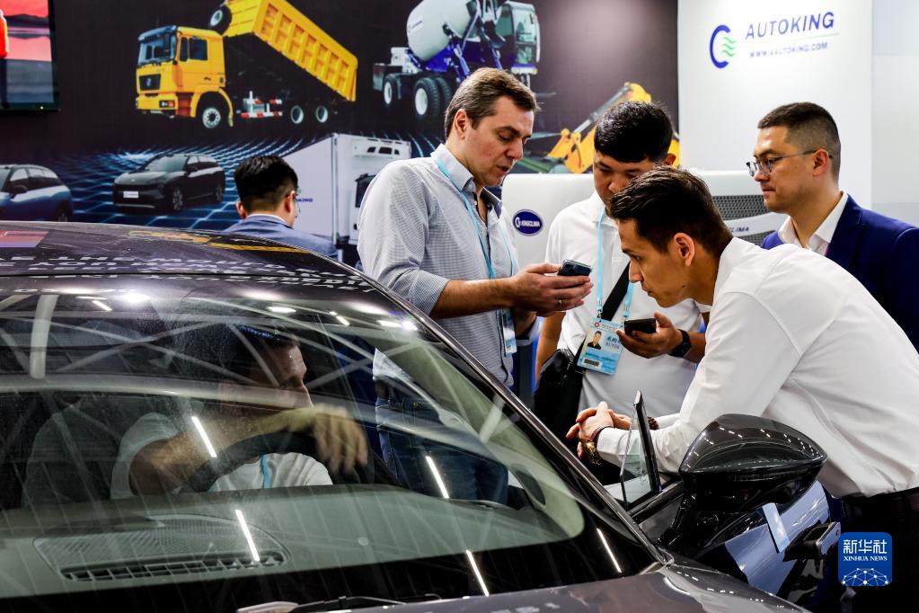 4月15日,采購商在廣交會(huì )新設置的新能源及智能網(wǎng)聯(lián)汽車(chē)展區了解中國新能源汽車(chē)產(chǎn)品。