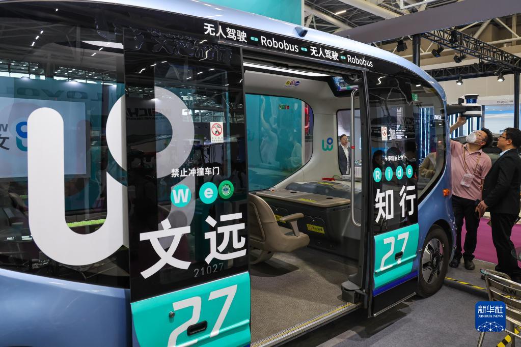 這是廣交會(huì )新設置的新能源及智能網(wǎng)聯(lián)汽車(chē)展區展示的文遠知行無(wú)人駕駛小巴(4月15日攝)。