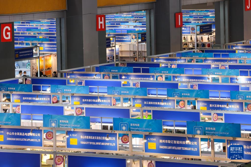 廣交會(huì )電子消費品和信息產(chǎn)品展區密集的展位(4月15日攝)。