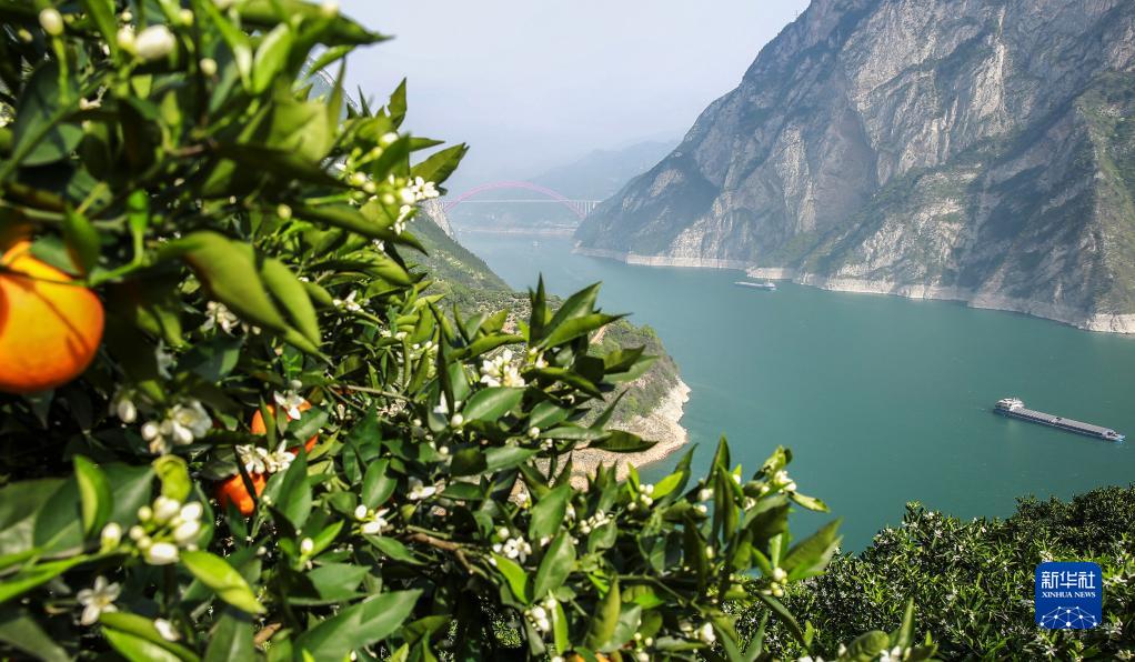眼下,有“中國臍橙之鄉”美譽(yù)的三峽庫區湖北省秭歸縣長(cháng)江兩岸橙花盛開(kāi),晚熟臍橙掛滿(mǎn)枝頭,花果同樹(shù)的橙樹(shù)與峽江景觀(guān)相映如畫(huà)。