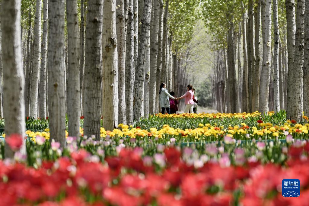 當日,北京永定河綠色港灣郁金香文化節在大興區北臧村鎮開(kāi)幕,100余萬(wàn)株各式花卉競相開(kāi)放,游客徘徊其間宛如游弋在七彩花海。