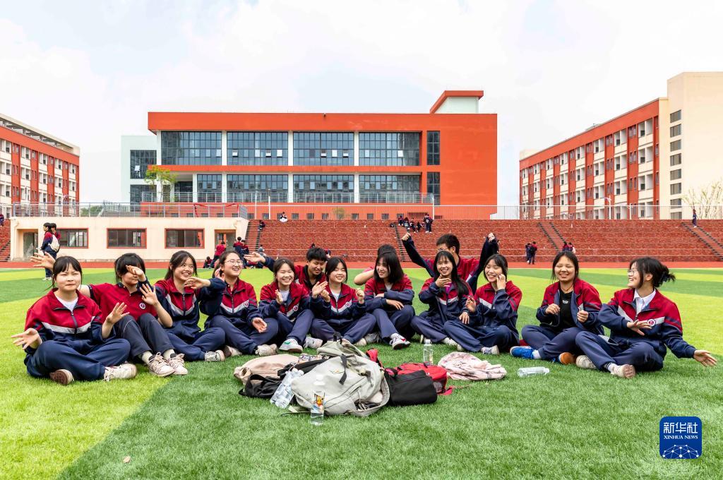 4月15日,黔西第一中學(xué)學(xué)生在操場(chǎng)歡快歌唱。
