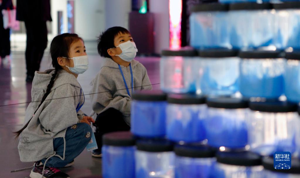 4月15日,小朋友在“2023第六屆蘇州·金雞湖雙年展”上參觀(guān)。