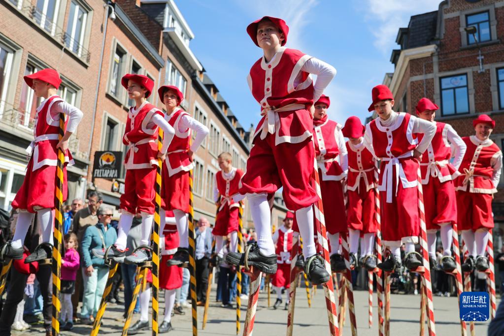 4月15日,演員在比利時(shí)那慕爾市傳統民俗日活動(dòng)上表演。