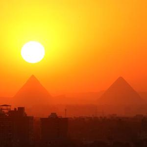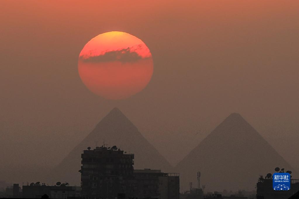 這是4月15日在埃及開(kāi)羅拍攝的吉薩金字塔群日落景色。