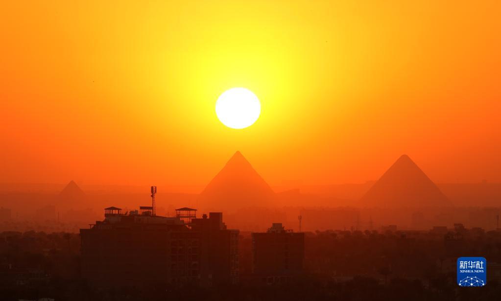 這是4月15日在埃及開(kāi)羅拍攝的吉薩金字塔群日落景色。
