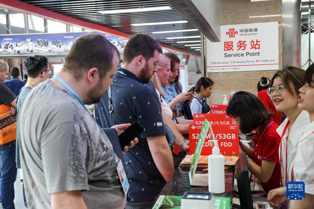 4月15日,客商在廣交會(huì )展館內設置的通訊服務(wù)點(diǎn)選購電話(huà)卡。
