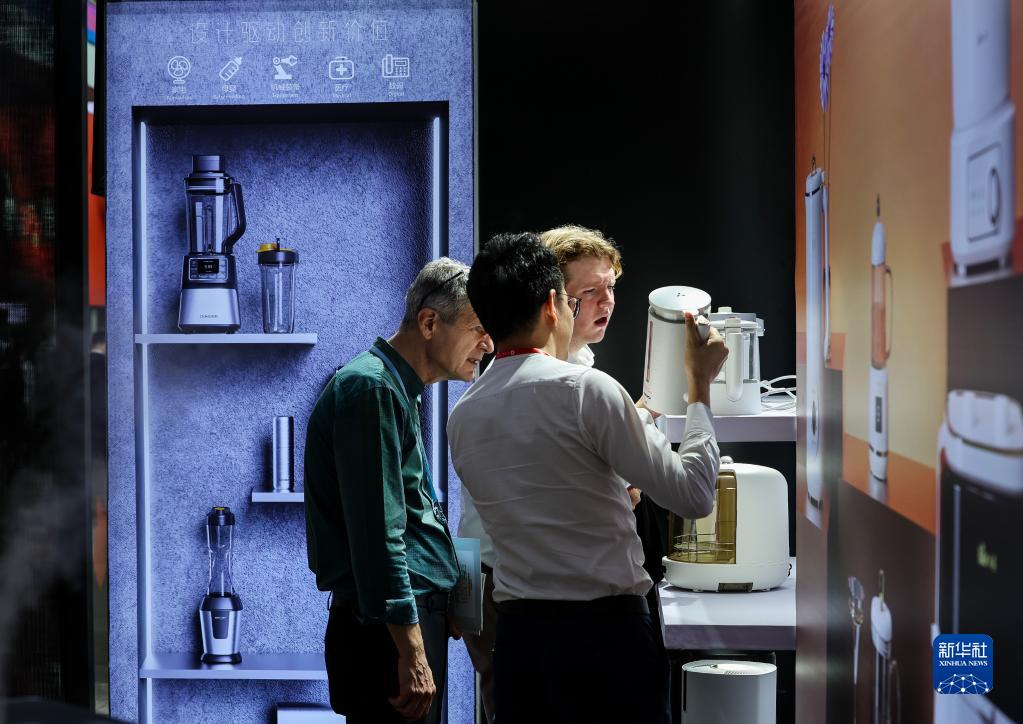 4月15日,采購商在第133屆廣交會(huì )上了解一家中國工業(yè)設計企業(yè)的小家電展品。