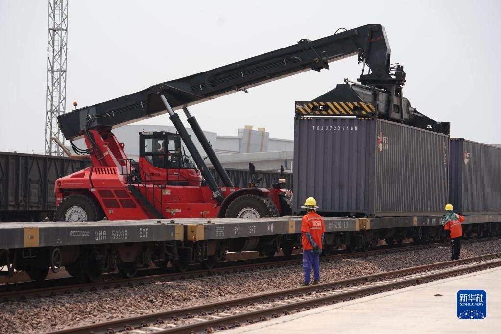 4月15日,老中鐵路有限公司的工人在老撾萬(wàn)象南站裝載貨物。