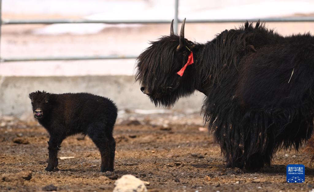 這是4月14日拍攝的剛察縣環(huán)湖型牦牛良種繁育基地內的環(huán)湖型長(cháng)毛牦牛。 新華社記者 張宏祥 攝