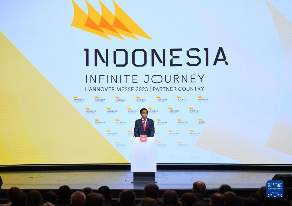 4月16日,印度尼西亞總統佐科在德國漢諾威工業(yè)博覽會(huì )開(kāi)幕式上致辭。