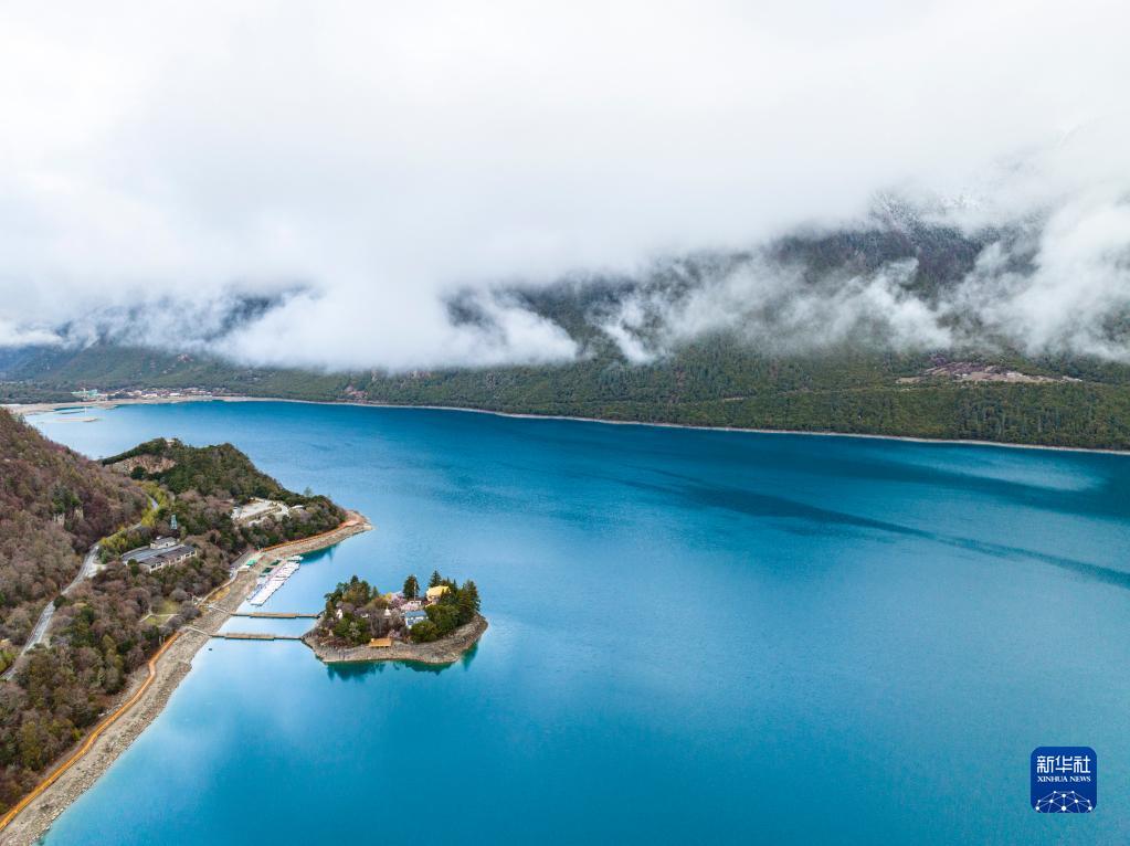4月17日拍攝的巴松措(無(wú)人機照片)。