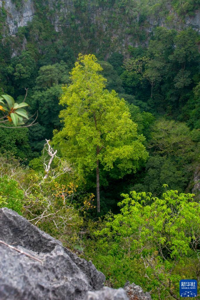 3月15日拍攝的位于巖溶峰叢洼地中的望天樹(shù)。