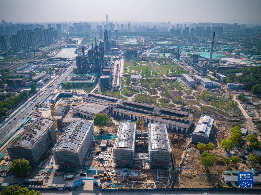 這是4月17日拍攝的建設中的杭鋼工業(yè)舊址公園全景(無(wú)人機照片)。