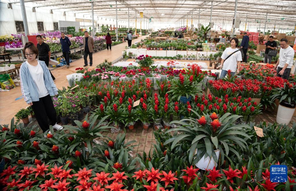 4月17日,顧客在河北省廊坊市永清縣恒美國際花都選購鮮花。