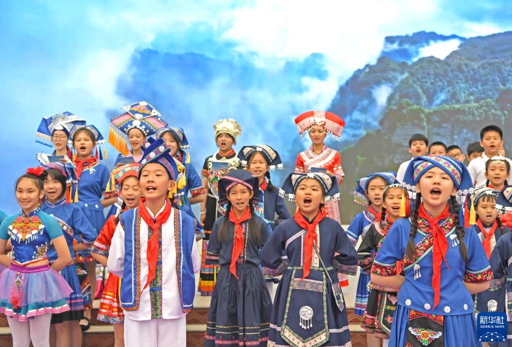 當日,廣西南寧市濱湖路小學(xué)舉行慶?!叭氯敝黝}教育活動(dòng)暨2023年青秀區民族團結進(jìn)步宣傳月啟動(dòng)儀式。隨著(zhù)傳統節日“壯族三月三”臨近,廣西各地陸續開(kāi)展豐富多彩的慶?;顒?dòng)。