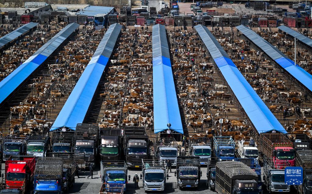 這是位于通遼市科爾沁左翼中旗的成峰牲畜交易市場(chǎng)(4月12日攝)。
