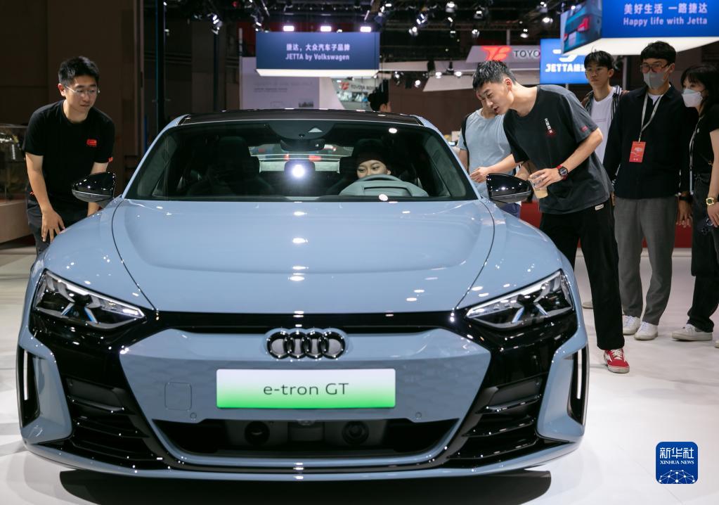 4月18日在2023上海車(chē)展上拍攝的奧迪新能源跑車(chē)。