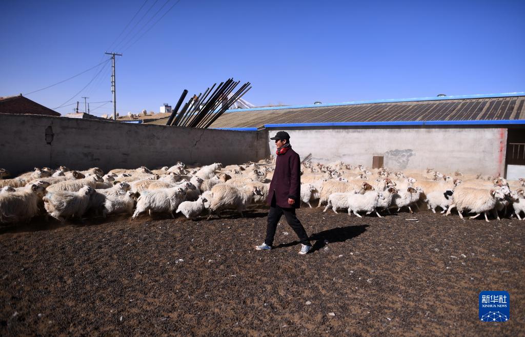 4月14日,在青海省海北藏族自治州剛察縣泉吉鄉寧夏村,牧民拉寶在自家羊圈中。