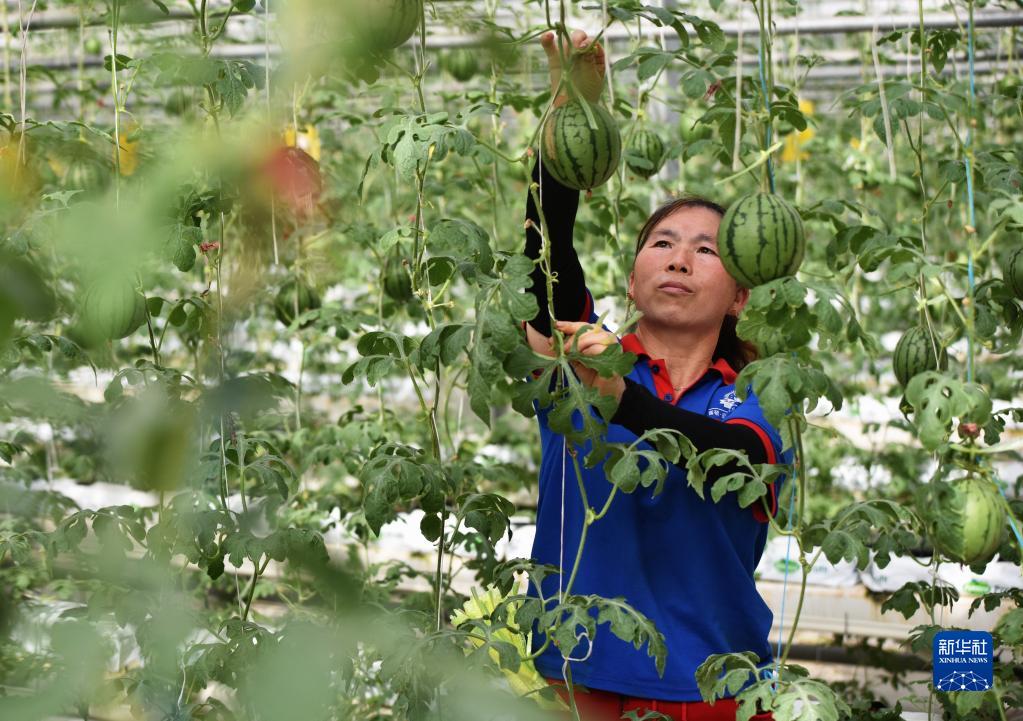 4月18日,河北省邢臺市南和區賈宋鎮一家現代農業(yè)園區工人在對西瓜進(jìn)行日常管理。