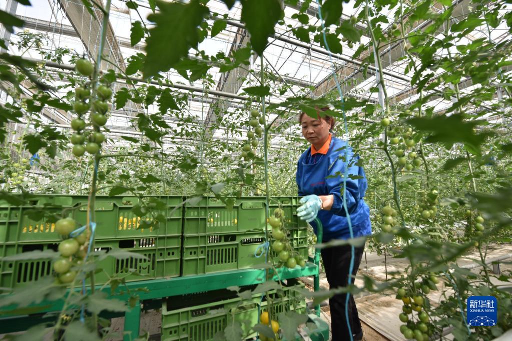 4月18日,河北省邢臺市南和區賈宋鎮一家現代農業(yè)園區工人在采摘西紅柿。