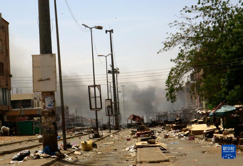蘇丹武裝部隊和快速支援部隊之間的武裝沖突18日進(jìn)入第四天,經(jīng)過(guò)一個(gè)早晨的激戰后,首都喀土穆出現短暫平靜。雙方同意?;?4小時(shí)。新華社發(fā)(穆罕默德·海德?tīng)枖z)