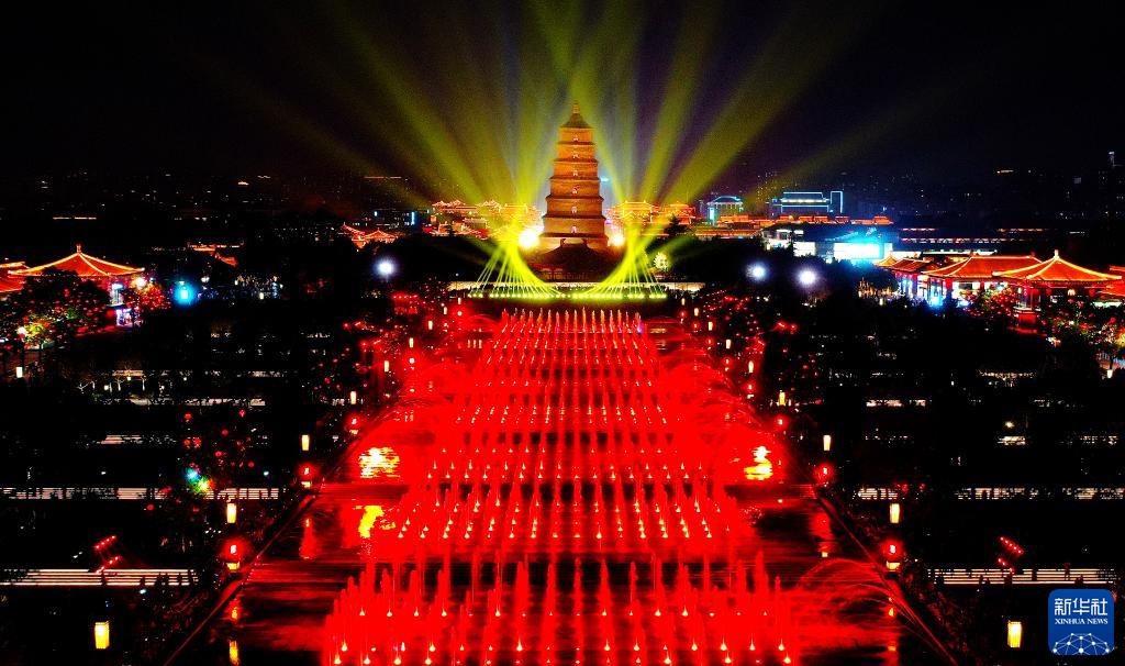 陜西西安大雁塔北廣場(chǎng)音樂(lè )噴泉是西安旅游打卡地之一,每天會(huì )進(jìn)行四場(chǎng)演出,吸引市民和游客前來(lái)觀(guān)看。