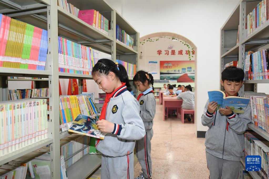 4月19日,吳興區第一小學(xué)的學(xué)生們在圖書(shū)館借閱書(shū)籍。