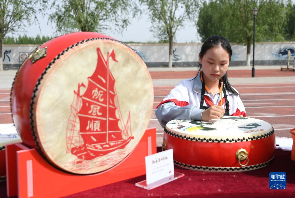 4月19日,門(mén)樓中心小學(xué)的學(xué)生在活動(dòng)中繪制鼓面。