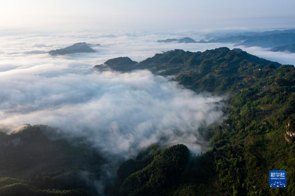 當日,位于重慶市南川區的世界自然遺產(chǎn)地金佛山雨后放晴,山間升騰起的水汽匯聚成云海在山巒之間流淌,美不勝收。