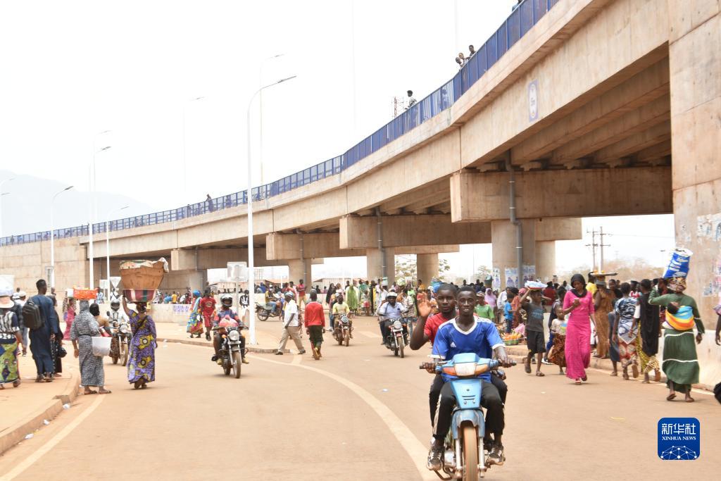 4月18日,人們從幾內亞科納克里卡格貝倫立交橋附近經(jīng)過(guò)。