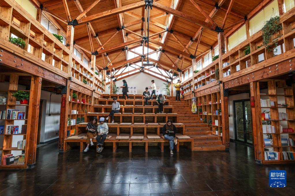 4月19日,讀者在江村文化禮堂閱讀書(shū)籍。