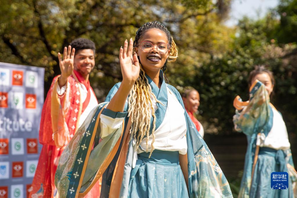 4月19日,學(xué)生在南非約翰內斯堡大學(xué)孔子學(xué)院表演舞蹈。