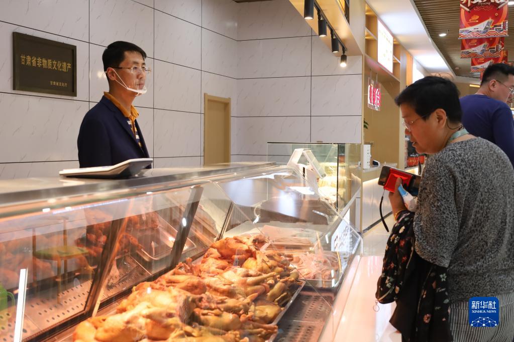 4月19日,游客在甘肅省白銀市會(huì )寧紅色驛站購買(mǎi)特色小吃。