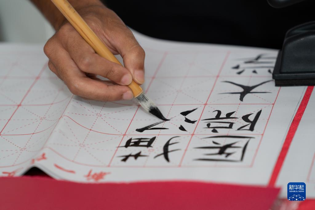 4月19日,參觀(guān)者在巴西里約熱內盧體驗中國書(shū)法。