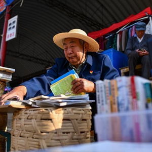 4月19日,李存德拉著(zhù)車(chē)前往農家書(shū)屋裝書(shū),準備出攤。新華社記者 江文耀 攝