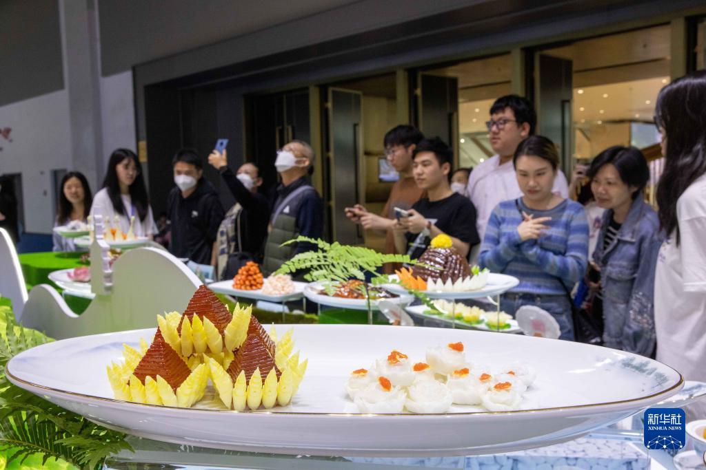 4月20日,參觀(guān)者在“味美浙江”餐飲消費歡樂(lè )季現場(chǎng)參觀(guān)浙江特色菜肴。