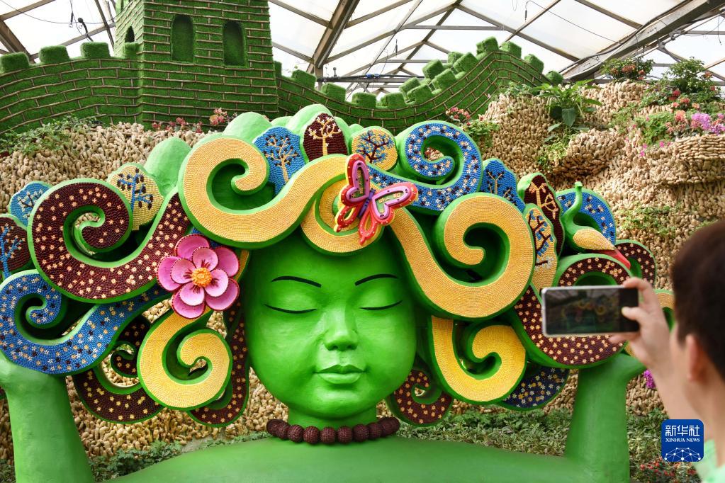 4月20日,參觀(guān)者在菜博會(huì )蔬菜文化景觀(guān)展區拍攝。