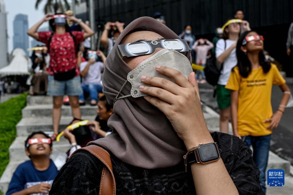 4月20日,人們在印度尼西亞雅加達觀(guān)看日食。
