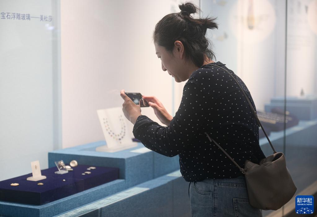 4月20日,觀(guān)眾在海南省博物館觀(guān)看“瑠光異彩——絲路上的古玻璃器藝術(shù)展”。