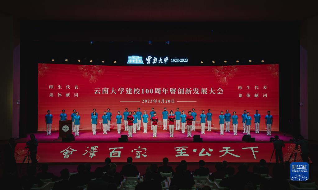 4月20日,師生代表在云南大學(xué)建校100周年暨創(chuàng )新發(fā)展大會(huì )上朗誦。