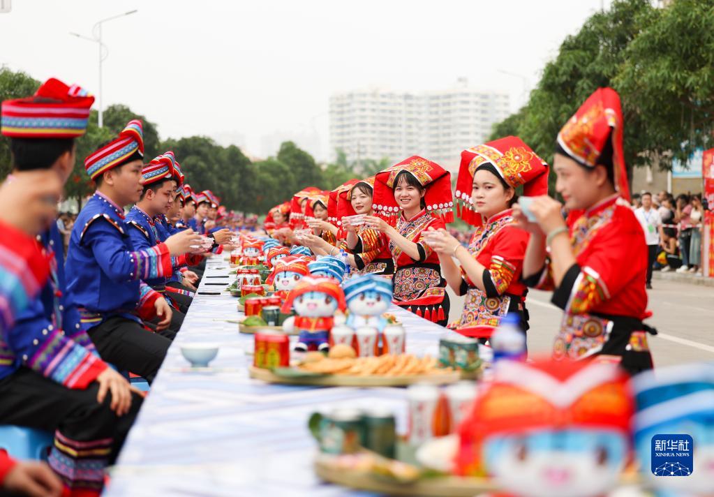 當日,上思文化旅游節在廣西壯族自治區防城港市上思縣開(kāi)幕,活動(dòng)現場(chǎng)舉行了舞鹿表演、竹竿舞、長(cháng)桌宴等活動(dòng),讓居民和游客感受當地傳統習俗,喜迎傳統節日“三月三”。