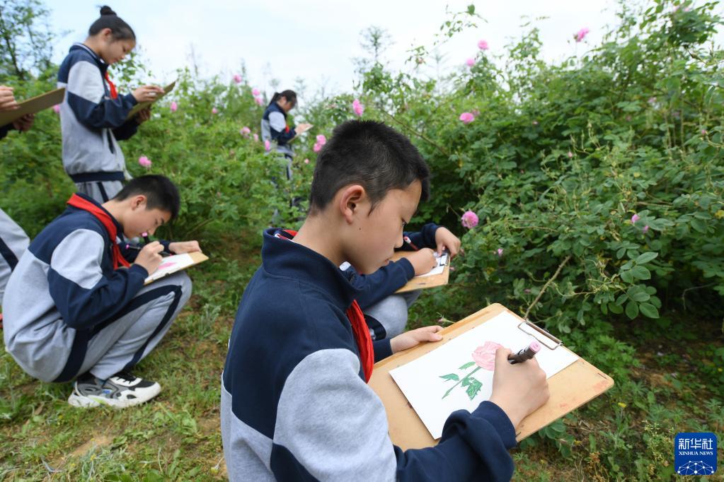 4月20日,埭溪鎮上強中學(xué)的學(xué)生在玫瑰莊園寫(xiě)生。