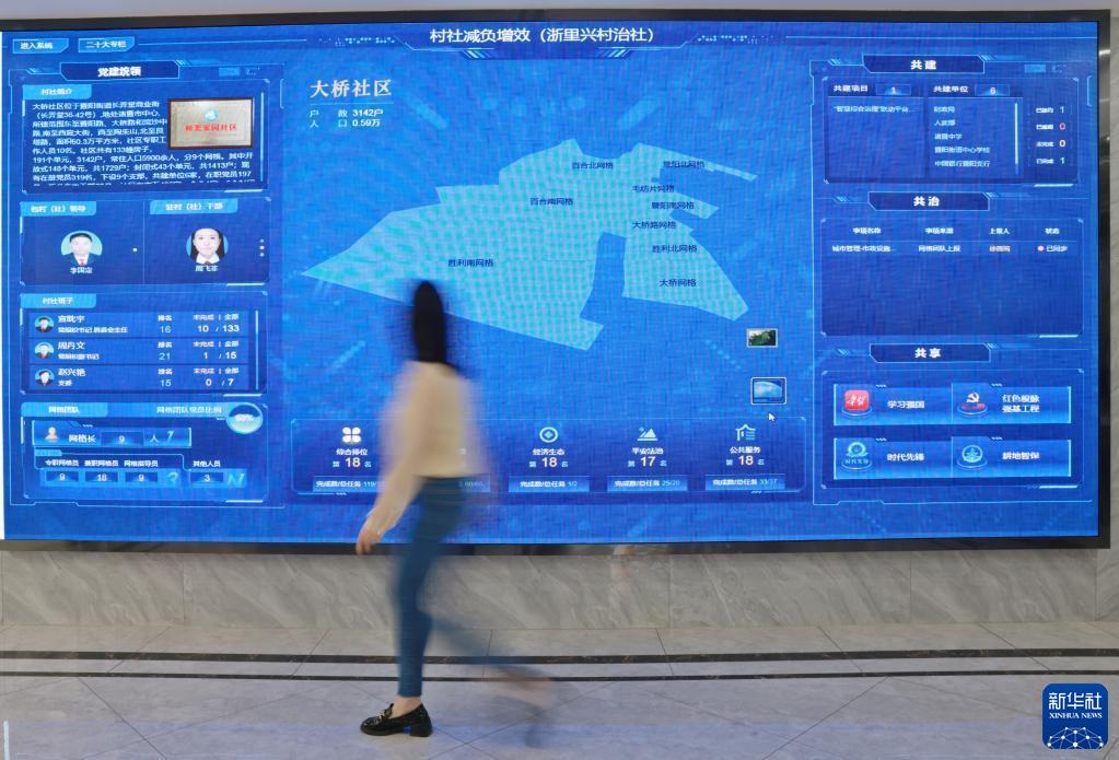 4月20日在諸暨市暨陽(yáng)街道大橋未來(lái)社區拍攝的“浙里興村治社”數字管理大屏幕。