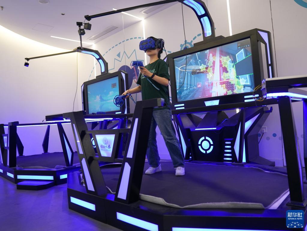 4月20日,為求智未來(lái)社區提供活動(dòng)資源的周邊商家、“你好大腦”體驗館工作人員演示測試青少年壓力耐受能力的VR項目。