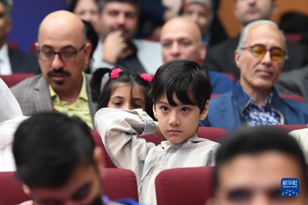 這是4月20日在伊朗首都德黑蘭青少年智育中心禮堂拍攝的天宮對話(huà)——神舟十五號航天員乘組與上海合作組織國家青少年問(wèn)答活動(dòng)的伊朗會(huì )場(chǎng)現場(chǎng)。新華社記者 沙達提 攝