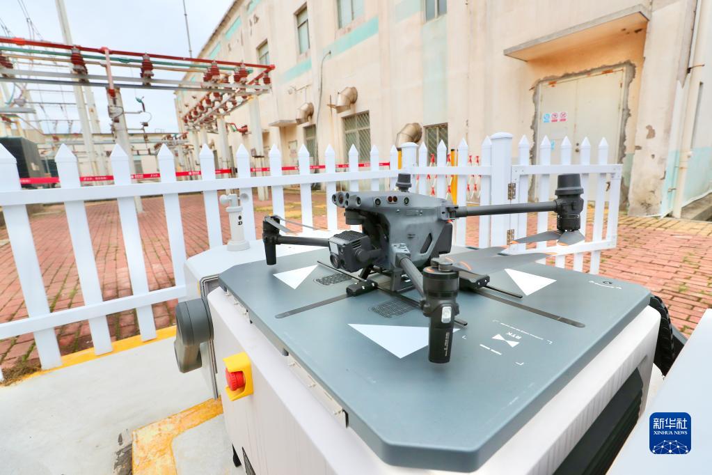 這是福建平潭前進(jìn)變電站配備的無(wú)人機自主巡檢設備(4月20日攝)。