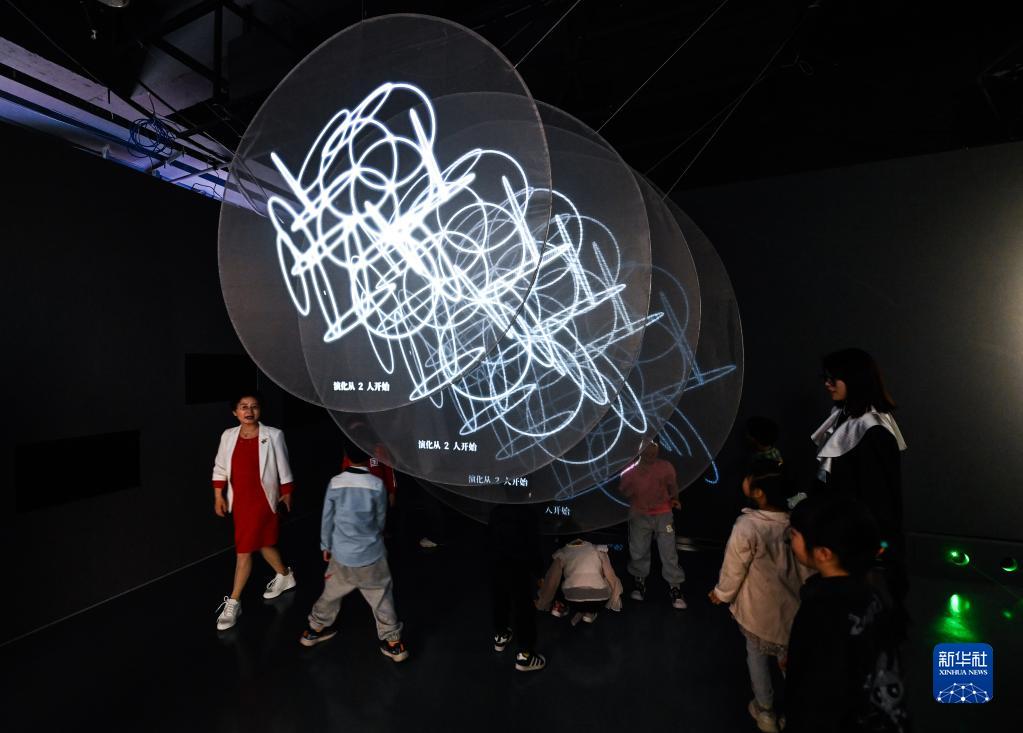 4月21日,嘉興市圖書(shū)館元宇宙閱讀體驗館的自然課堂正通過(guò)3D投影的方式介紹生命起源。