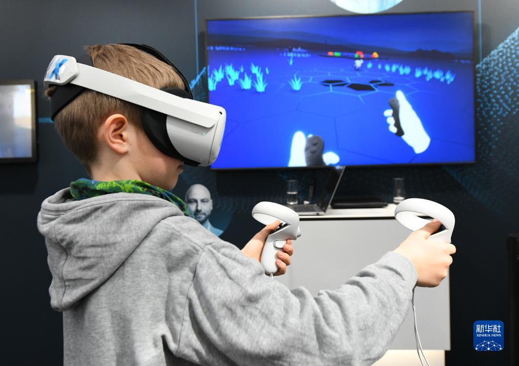 4月20日,小朋友在德國漢諾威工博會(huì )上體驗VR游戲。