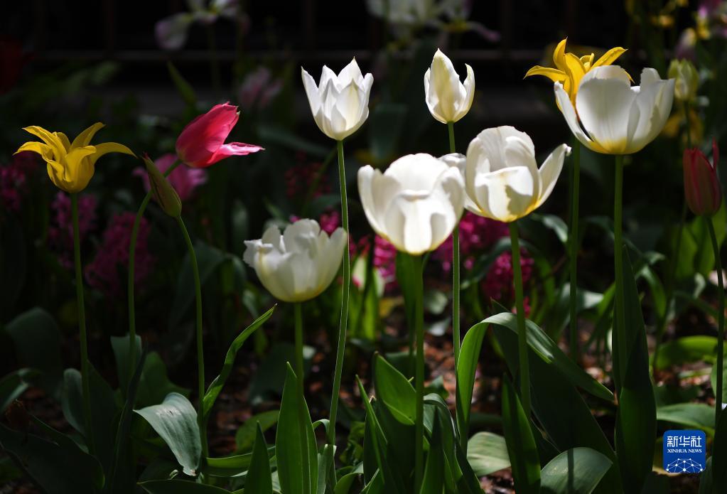4月20日,美國紐約的一處花園郁金香盛開(kāi)。